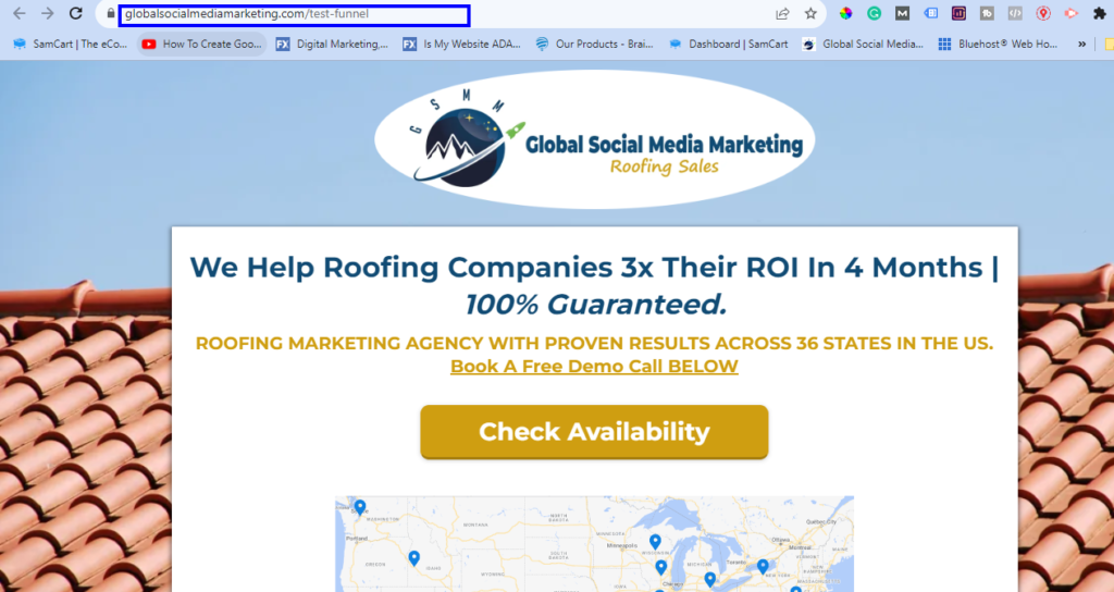Create the Landing Page Step: The landing page serves as the entry point of your sales funnel; it’s where potential leads first arrive. You can design this page based on your specific goal or offer. For instance, the example below showcases a landing page built for capturing roofing leads.