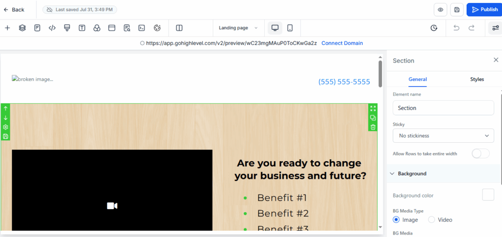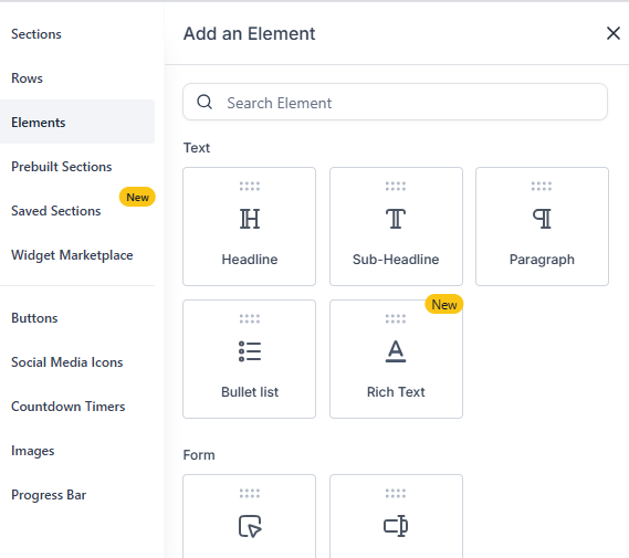 Add Elements: Enhance your page by adding various elements such as headlines, paragraphs, bullet lists, images, buttons, and more. These components help you build engaging and visually appealing funnel pages.