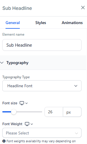 Customize Settings: Click on any section, row, column, or element to access its specific settings on the left-hand panel. From there, you can adjust the design and functionality to fit your needs. For example, selecting a headline will open its customization options such as font size, color, alignment, and more.